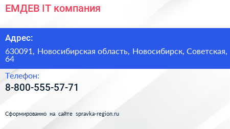 ЕМДЕВ, IT-компания по адресу 630091, Новосибирская область, Новосибирск, Советская, 64 в дальнейшем Организация, размещена в следующих категориях: