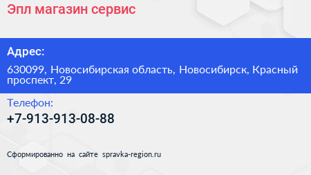 Эпл, магазин-сервис по адресу 630099, Новосибирская область, Новосибирск, Красный проспект, 29 в дальнейшем Организация, размещена в следующих категориях: