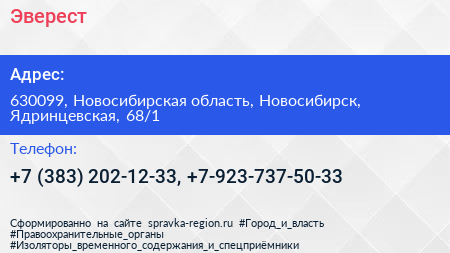 Эверест по адресу 630099, Новосибирская область, Новосибирск, Ядринцевская, 68/1 в дальнейшем Организация, размещена в следующих категориях: