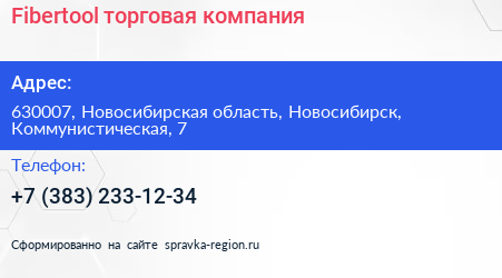 Fibertool, торговая компания по адресу 630007, Новосибирская область, Новосибирск, Коммунистическая, 7 в дальнейшем Организация, размещена в следующих категориях: