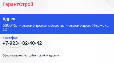 ГарантСтрой по адресу 630045, Новосибирская область, Новосибирск, Пермская, 12 в дальнейшем Организация, размещена в следующих категориях: