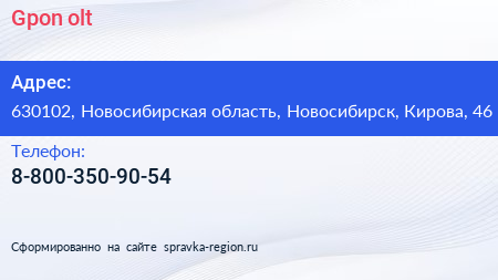 Gpon-olt по адресу 630102, Новосибирская область, Новосибирск, Кирова, 46 в дальнейшем Организация, размещена в следующих категориях: