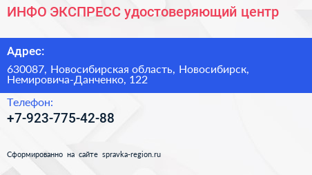 ИНФО ЭКСПРЕСС, удостоверяющий центр по адресу 630087, Новосибирская область, Новосибирск, Немировича-Данченко, 122 в дальнейшем Организация, размещена в следующих категориях: