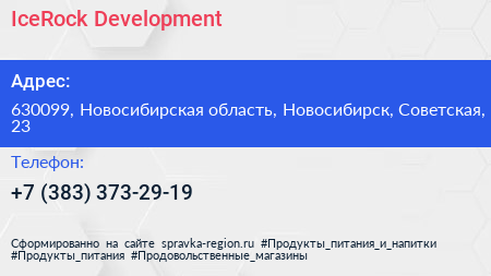IceRock Development по адресу 630099, Новосибирская область, Новосибирск, Советская, 23 в дальнейшем Организация, размещена в следующих категориях: