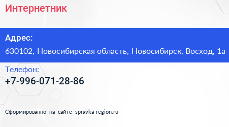 Интернетник по адресу 630102, Новосибирская область, Новосибирск, Восход, 1а в дальнейшем Организация, размещена в следующих категориях: