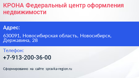КРОНА, Федеральный центр оформления недвижимости по адресу 630091, Новосибирская область, Новосибирск, Державина, 28 в дальнейшем Организация, размещена в следующих категориях: