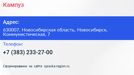 Кампуз по адресу 630007, Новосибирская область, Новосибирск, Коммунистическая, 7 в дальнейшем Организация, размещена в следующих категориях: