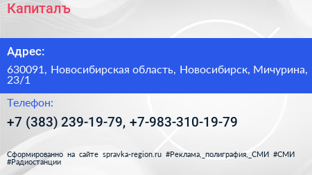Капиталъ по адресу 630091, Новосибирская область, Новосибирск, Мичурина, 23/1 в дальнейшем Организация, размещена в следующих категориях: