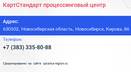 КартСтандарт, процессинговый центр по адресу 630102, Новосибирская область, Новосибирск, Кирова, 86 в дальнейшем Организация, размещена в следующих категориях: