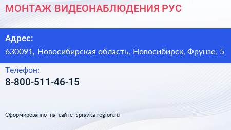 МОНТАЖ-ВИДЕОНАБЛЮДЕНИЯ.РУС по адресу 630091, Новосибирская область, Новосибирск, Фрунзе, 5 в дальнейшем Организация, размещена в следующих категориях: