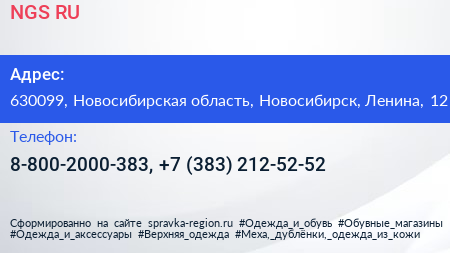 NGS.RU по адресу 630099, Новосибирская область, Новосибирск, Ленина, 12 в дальнейшем Организация, размещена в следующих категориях: