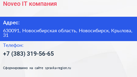 Noveo, IT-компания по адресу 630091, Новосибирская область, Новосибирск, Крылова, 31 в дальнейшем Организация, размещена в следующих категориях: