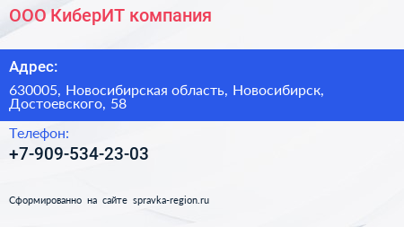 ООО КиберИТ, компания по адресу 630005, Новосибирская область, Новосибирск, Достоевского, 58 в дальнейшем Организация, размещена в следующих категориях: