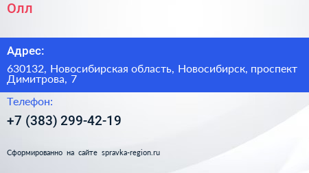 Олл по адресу 630132, Новосибирская область, Новосибирск, проспект Димитрова, 7 в дальнейшем Организация, размещена в следующих категориях: