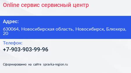 Online-сервис, сервисный центр по адресу 630064, Новосибирская область, Новосибирск, Блюхера, 20 в дальнейшем Организация, размещена в следующих категориях: