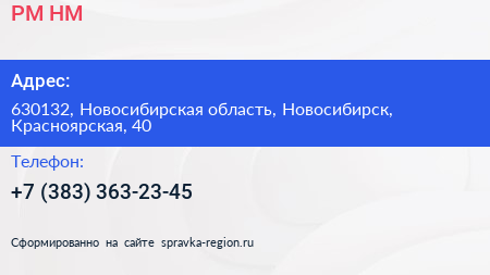 PM & HM по адресу 630132, Новосибирская область, Новосибирск, Красноярская, 40 в дальнейшем Организация, размещена в следующих категориях: