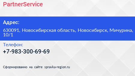 PartnerService по адресу 630091, Новосибирская область, Новосибирск, Мичурина, 10/1 в дальнейшем Организация, размещена в следующих категориях: