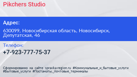 Pikchers Studio по адресу 630099, Новосибирская область, Новосибирск, Депутатская, 46 в дальнейшем Организация, размещена в следующих категориях: