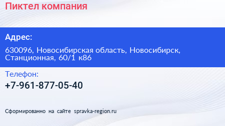 Пиктел, компания по адресу 630096, Новосибирская область, Новосибирск, Станционная, 60/1 к86 в дальнейшем Организация, размещена в следующих категориях: