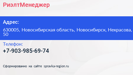 РиэлтМенеджер по адресу 630005, Новосибирская область, Новосибирск, Некрасова, 50 в дальнейшем Организация, размещена в следующих категориях:
