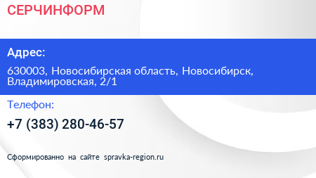 СЕРЧИНФОРМ по адресу 630003, Новосибирская область, Новосибирск, Владимировская, 2/1 в дальнейшем Организация, размещена в следующих категориях: