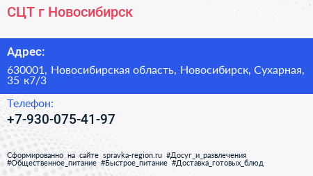 СЦТ, г. Новосибирск по адресу 630001, Новосибирская область, Новосибирск, Сухарная, 35 к7/3 в дальнейшем Организация, размещена в следующих категориях: