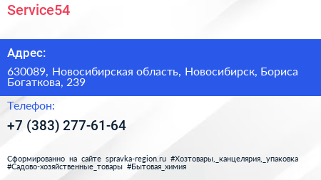 Service54 по адресу 630089, Новосибирская область, Новосибирск, Бориса Богаткова, 239 в дальнейшем Организация, размещена в следующих категориях: