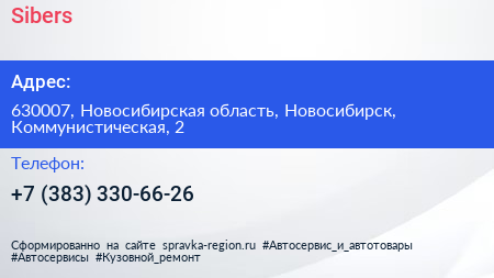 Sibers по адресу 630007, Новосибирская область, Новосибирск, Коммунистическая, 2 в дальнейшем Организация, размещена в следующих категориях: