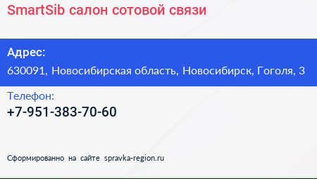 SmartSib, салон сотовой связи по адресу 630091, Новосибирская область, Новосибирск, Гоголя, 3 в дальнейшем Организация, размещена в следующих категориях: