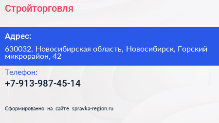 Стройторговля по адресу 630032, Новосибирская область, Новосибирск, Горский микрорайон, 42 в дальнейшем Организация, размещена в следующих категориях: