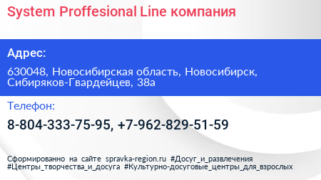 System Proffesional Line, компания по адресу 630048, Новосибирская область, Новосибирск, Сибиряков-Гвардейцев, 38а в дальнейшем Организация, размещена в следующих категориях: