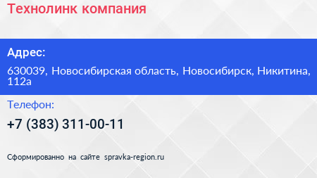 Технолинк, компания по адресу 630039, Новосибирская область, Новосибирск, Никитина, 112а в дальнейшем Организация, размещена в следующих категориях: