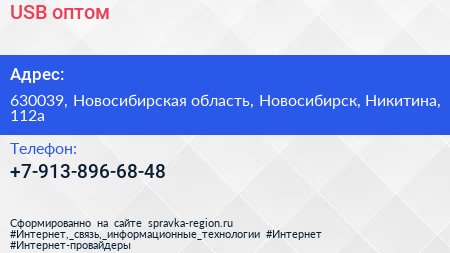 USB-оптом по адресу 630039, Новосибирская область, Новосибирск, Никитина, 112а в дальнейшем Организация, размещена в следующих категориях: