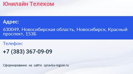 Юнилайн-Телеком по адресу 630049, Новосибирская область, Новосибирск, Красный проспект, 153Б в дальнейшем Организация, размещена в следующих категориях: