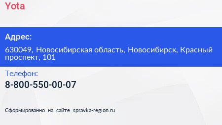 Yota по адресу 630049, Новосибирская область, Новосибирск, Красный проспект, 101 в дальнейшем Организация, размещена в следующих категориях: