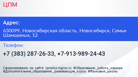 ЦПМ по адресу 630099, Новосибирская область, Новосибирск, Семьи Шамшиных, 12 в дальнейшем Организация, размещена в следующих категориях: