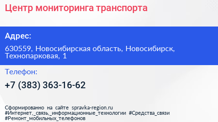 Центр мониторинга транспорта по адресу 630559, Новосибирская область, Новосибирск, Технопарковая, 1 в дальнейшем Организация, размещена в следующих категориях: