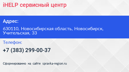 iHELP, сервисный центр по адресу 630110, Новосибирская область, Новосибирск, Учительская, 33 в дальнейшем Организация, размещена в следующих категориях: