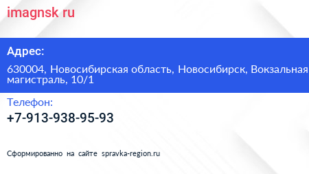 imagnsk.ru по адресу 630004, Новосибирская область, Новосибирск, Вокзальная магистраль, 10/1 в дальнейшем Организация, размещена в следующих категориях: