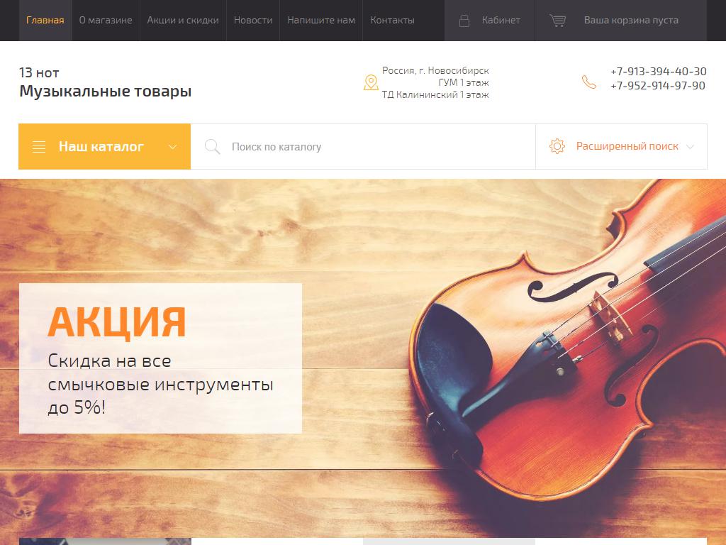 13 нот, магазин музыкальных инструментов по адресу 630075, Новосибирская область, Новосибирск, Богдана Хмельницкого, 1 в дальнейшем Организация, размещена в следующих категориях: