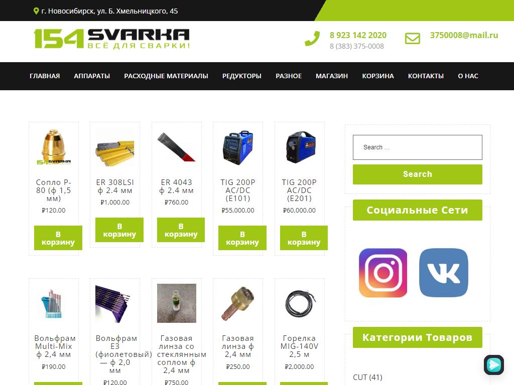 154svarka.ru, магазин по адресу 630110, Новосибирская область, Новосибирск, Богдана Хмельницкого, 45 в дальнейшем Организация, размещена в следующих категориях: