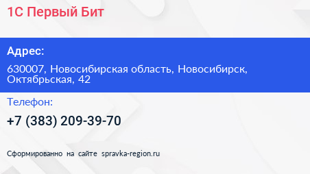 1С:Первый Бит по адресу 630007, Новосибирская область, Новосибирск, Октябрьская, 42 в дальнейшем Организация, размещена в следующих категориях: