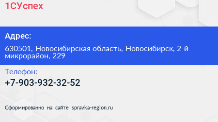 1СУспех по адресу 630501, Новосибирская область, Новосибирск, 2-й микрорайон, 229 в дальнейшем Организация, размещена в следующих категориях: