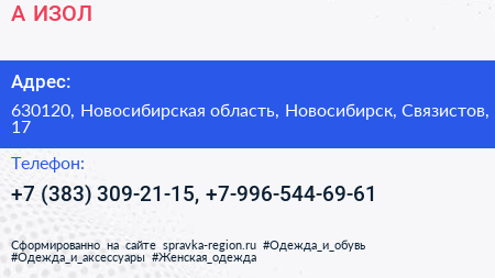 А-ИЗОЛ по адресу 630120, Новосибирская область, Новосибирск, Связистов, 17 в дальнейшем Организация, размещена в следующих категориях:
