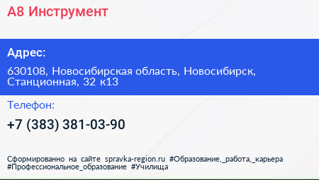 А8 Инструмент по адресу 630108, Новосибирская область, Новосибирск, Станционная, 32 к13 в дальнейшем Организация, размещена в следующих категориях: