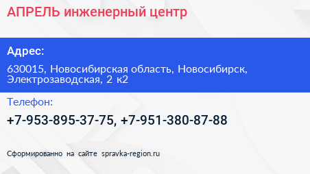 АПРЕЛЬ, инженерный центр по адресу 630015, Новосибирская область, Новосибирск, Электрозаводская, 2 к2 в дальнейшем Организация, размещена в следующих категориях: