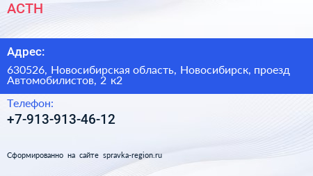 АСТН по адресу 630526, Новосибирская область, Новосибирск, проезд Автомобилистов, 2 к2 в дальнейшем Организация, размещена в следующих категориях: