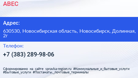 АВЕС по адресу 630530, Новосибирская область, Новосибирск, Долинная, 2г в дальнейшем Организация, размещена в следующих категориях: