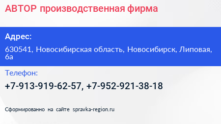АВТОР, производственная фирма по адресу 630541, Новосибирская область, Новосибирск, Липовая, 6а в дальнейшем Организация, размещена в следующих категориях: