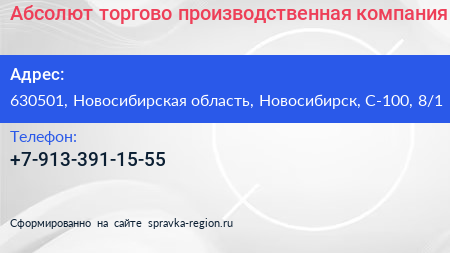 Абсолют, торгово-производственная компания по адресу 630501, Новосибирская область, Новосибирск, С-100, 8/1 в дальнейшем Организация, размещена в следующих категориях: